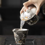 Silver purifies, steadies the hand, and enhances the flavor of tea. The textured black-silver glaze and carved dragon motif breathe life into every sip, inviting a tranquil, ceremonial experience.