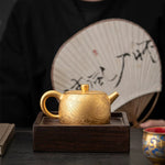This exquisite gilded teapot is entirely hand-carved by a master artisan, featuring the intricate "Jinglan Dragon & Phoenix Harmony" motif — a symbol of good fortune, elegance, and prosperity.