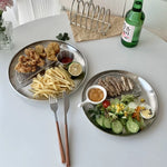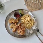 Elevate your plating game with this chic and functional INS-style stainless steel fried food tray set—perfect for crispy cravings and aesthetic servings. Crafted from food-grade stainless steel with a sleek brushed finish, each set includes 2 shallow plates and 2 detachable oil-draining racks, designed to keep fried delights crisp and beautifully presented.