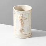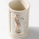 This embraces the essence of wabi-sabi minimalism with its handcrafted seahorse and starfish reliefs. Made from premium resin with a textured matte finish, it brings an elegant coastal charm to your bathroom. Measuring 7×10.5cm, this cup is both functional and decorative — perfect for daily rinsing or storing toothbrushes. A must-have for those who appreciate simplicity, nature, and understated luxury.