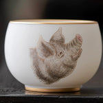 This exquisite Chinese Zodiac Porcelain Tea Cup series features twelve iconic zodiac animals, each symbolizing unique virtues such as wisdom, strength, and prosperity.